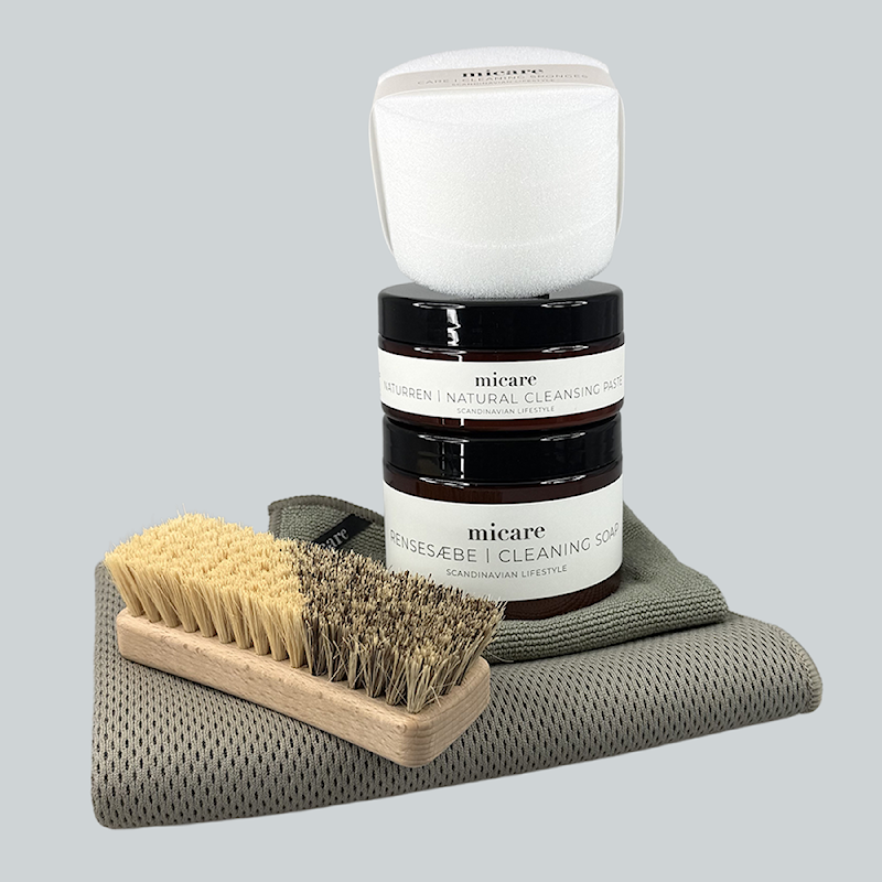 Den store rensepakke er et omfattende kit der giver dig alt, hvad du behøver til effektiv og skånsom rengøring og pleje af en bred vifte af materialer og overflader i dit hjem. Med micare-produkter i høj kvalitet får du et naturligt og miljøvenligt alternativ til at holde dine ejendele rene, pæne og velplejede.