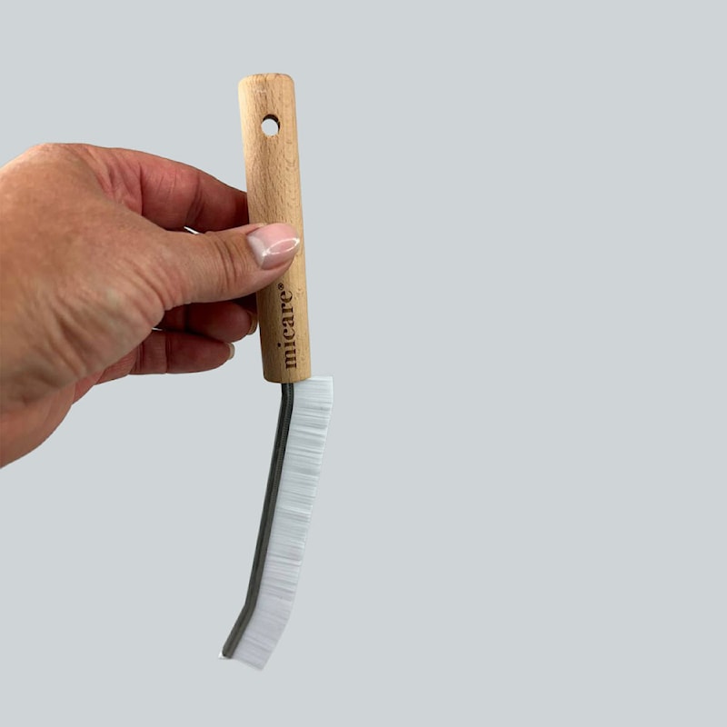 Børsten ligger godt i hånden, og hårene har en tilpas hårdhed og længde, hvilket gør den yderst behagelig at arbejde med – selv når du går grundigt til værks. Det ergonomiske håndtag i FSC-certificeret træ giver både komfort og kontrol, mens det pæne design gør den lige så pæn at have liggende, som den er effektiv i brug.