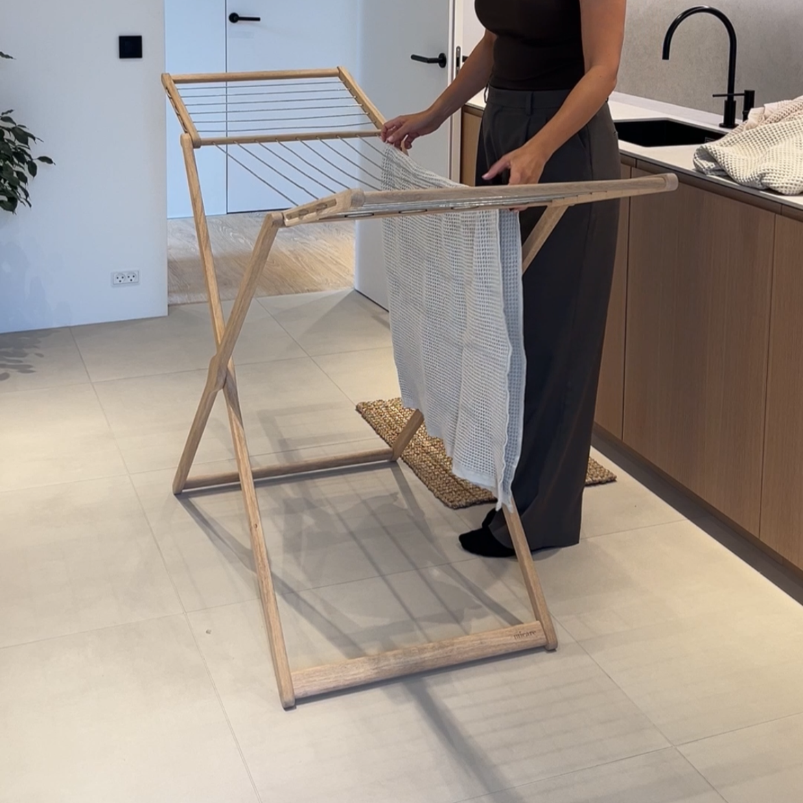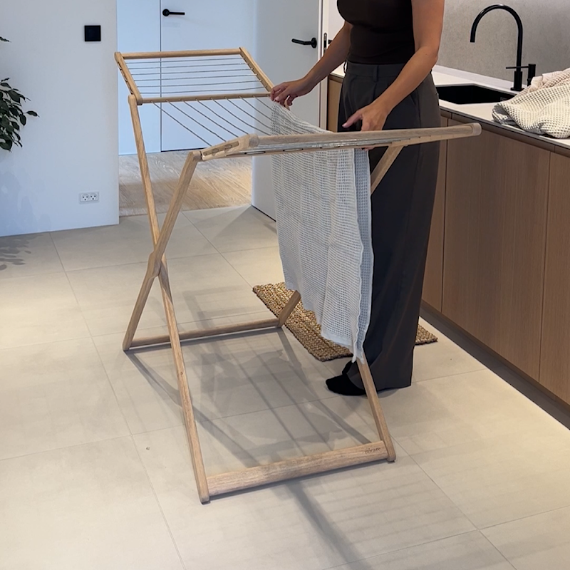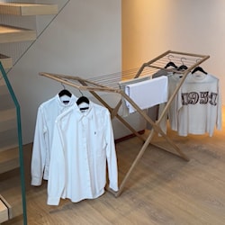 Dette er dansk design, når det er allerbedst: Et elegant tørrestativ, der forener form, funktion og æstetik i en enkel og tidløs balance. Det er skabt i FSC-certificeret massivt træ, som bringer varme og ro ind i hjemmet og gør selv hverdagens opgaver smukkere.