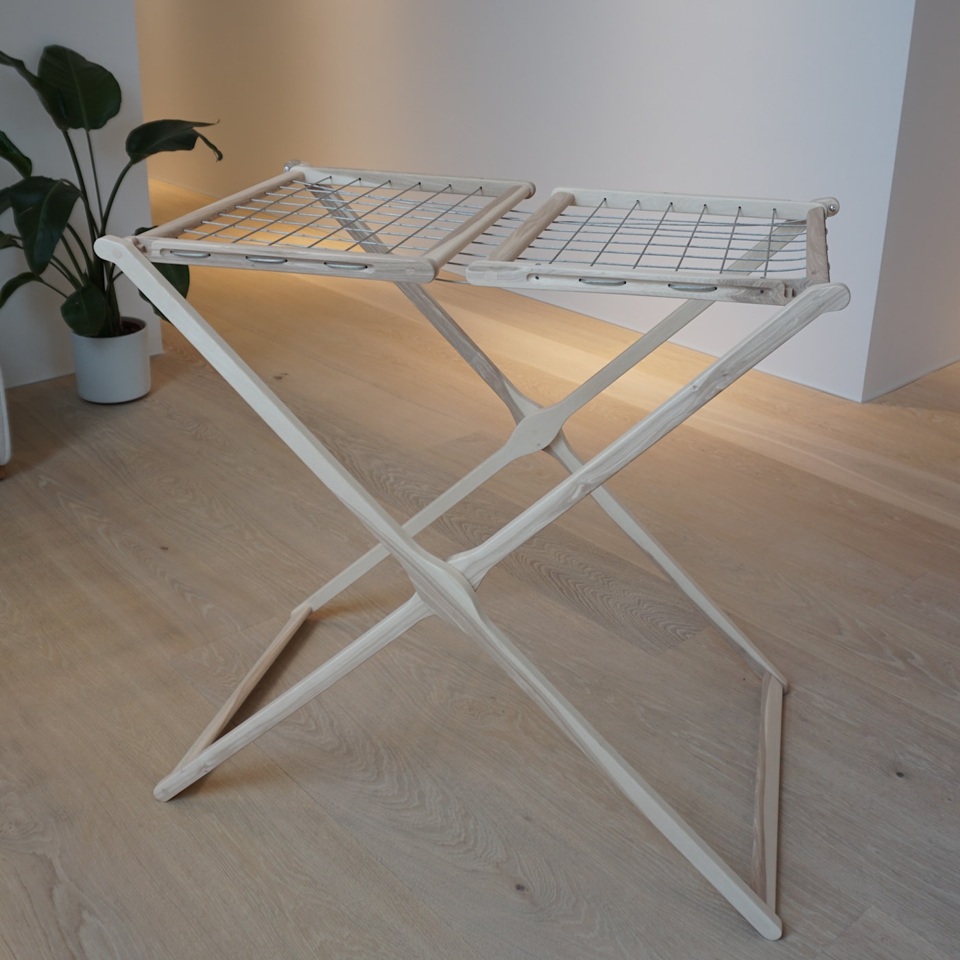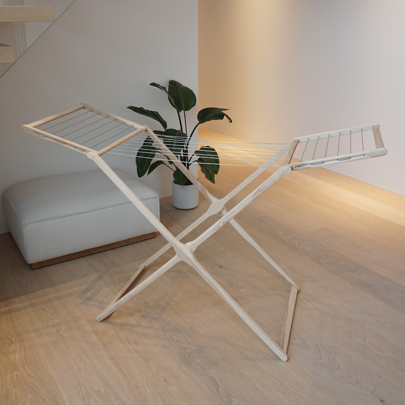 Dette er dansk design, når det er allerbedst: Et elegant tørrestativ, der forener form, funktion og æstetik i en enkel og tidløs balance. Det er skabt i FSC-certificeret massivt træ, som bringer varme og ro ind i hjemmet og gør selv hverdagens opgaver smukkere.